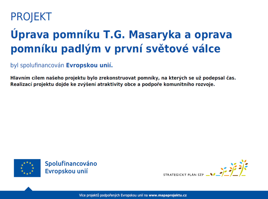 Úvod > Dění v obci > Aktuality > Projekt úprava pomníku T.G.Masaryka a oprava pomníku padlým v 1. světové válce