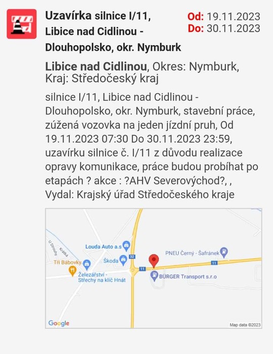 Snížená průjezdnost obcí - stavební práce na komunikaci