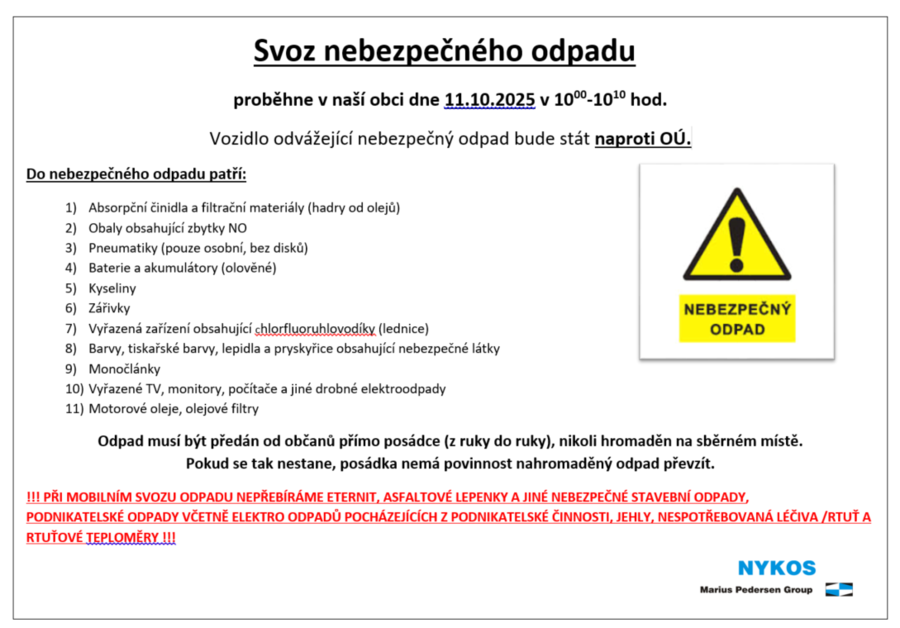 Úvod > Dění v obci > Aktuality > Svoz nebezpečného odpadu