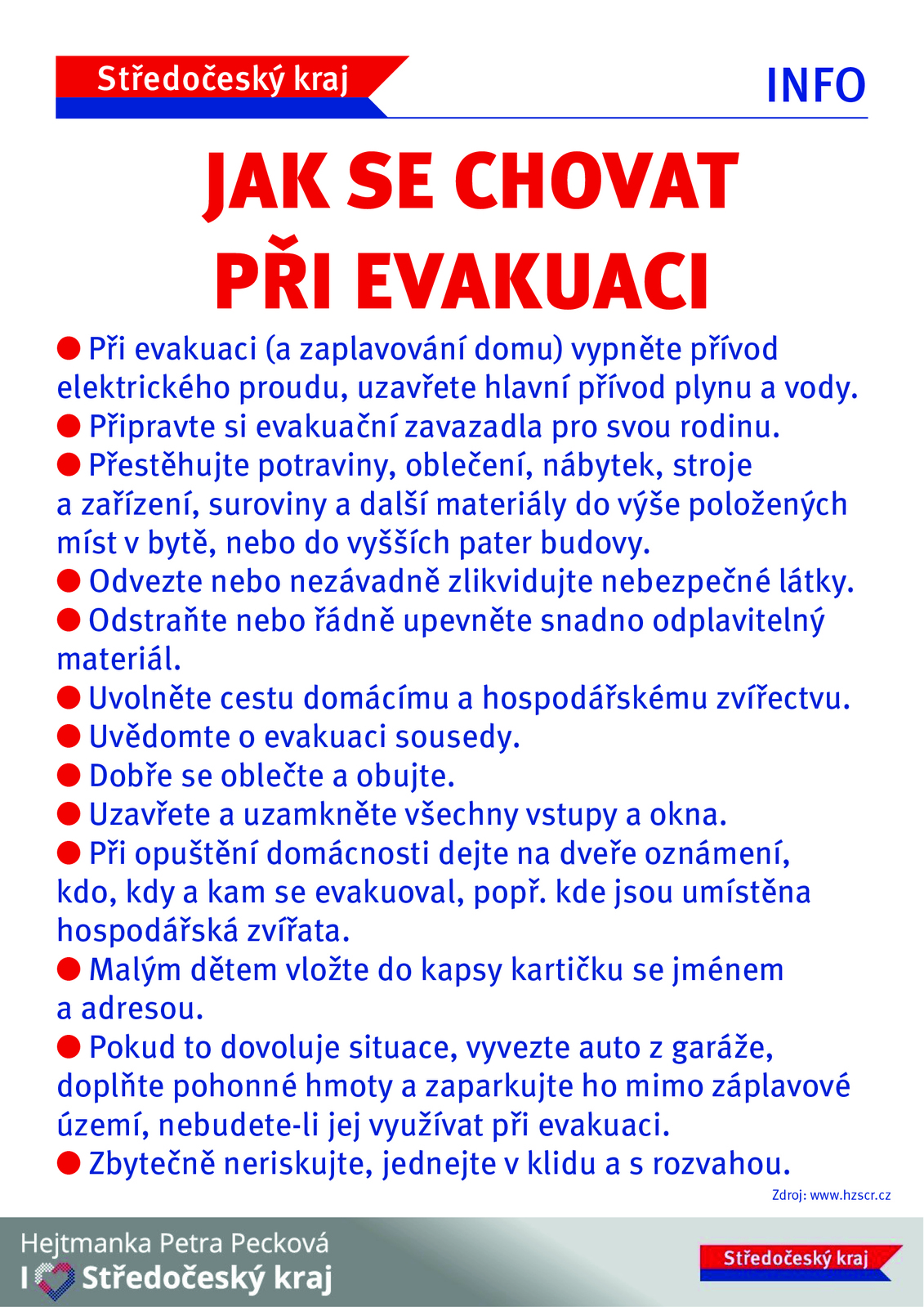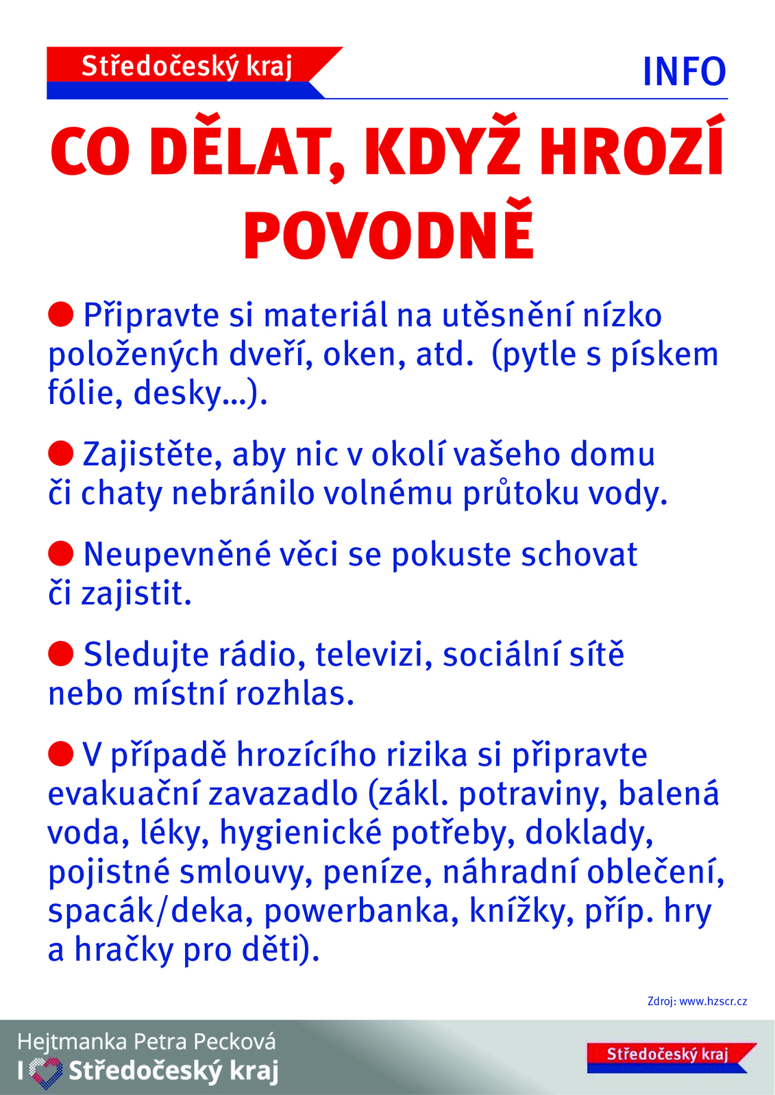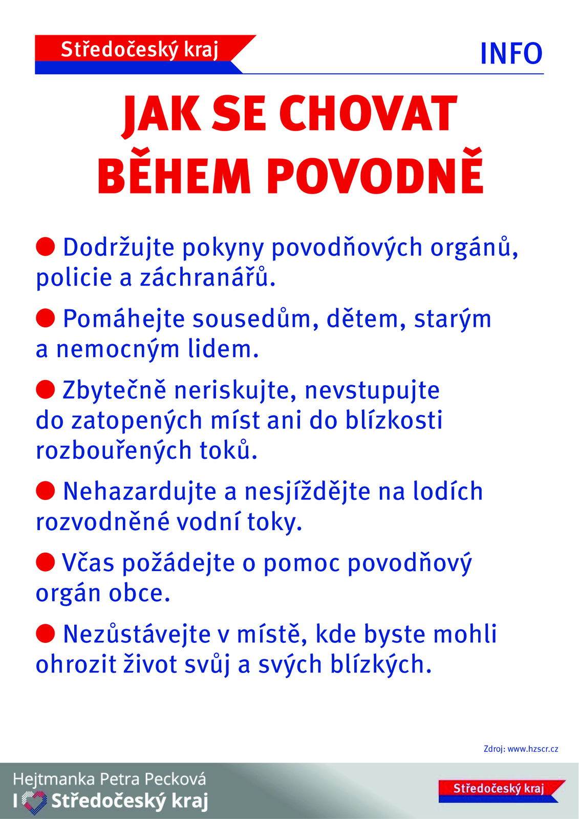 V případě, že budete potřebovat pomoc, kontaktujte OU - tel. 724 182 012. Sbor místních dobrovolných hasičů je připraven pomoci s čerpáním vody.