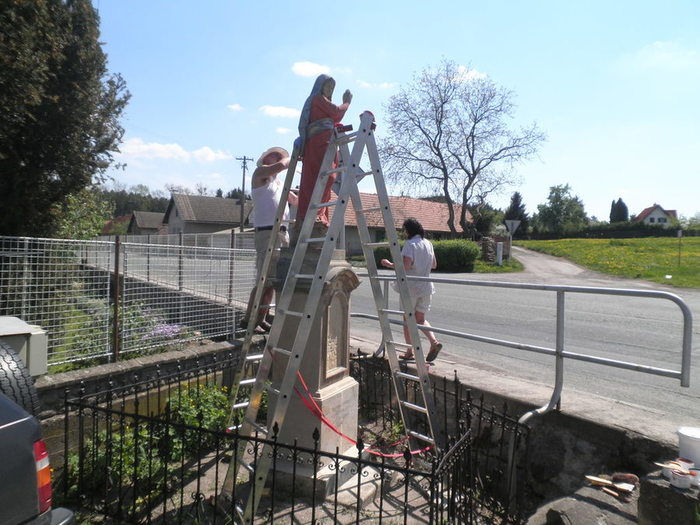 Úvod > Dění v obci > Fotogalerie > Restaurování sochy Panny Marie